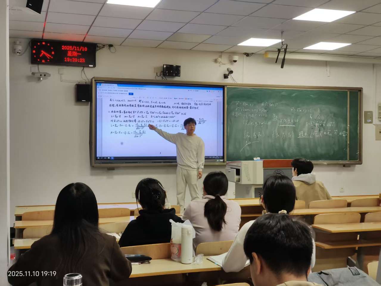 为精准匹配不同年级的学习痛点,活动依托周三、周四晚自习时段,在公共教学楼C座分批次、分科目开展定制化辅导。保研学子充分发挥专业优势,针对数学主干课程的重难点,展开靶向式讲解,让理论知识具象化、复杂问题条理化。针对新生,梳理《数学分析一》知识框架、拆解《高等代数一》概念难点;为大二学生归纳《数学分析三》解题技巧、解读《近世代数》核心定理;为大四学生分享《微分几何》学习方法。